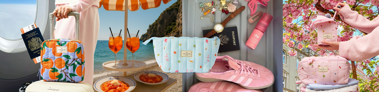 For hotel bathrooms, weekend packing, and getting ready wherever the sun takes you. Fresh spring prints across makeup bags, travel cases, and everything in between.