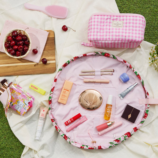 Drawstring Flat Lay Makeup Bag - Cherries