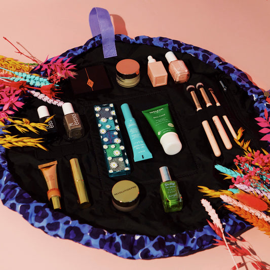 Drawstring Flat Lay Makeup Bag - Blue Leopard