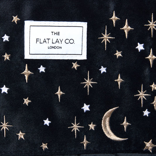 Drawstring Flat Lay Makeup Bag - Celestial Blue Embroidered Velvet
