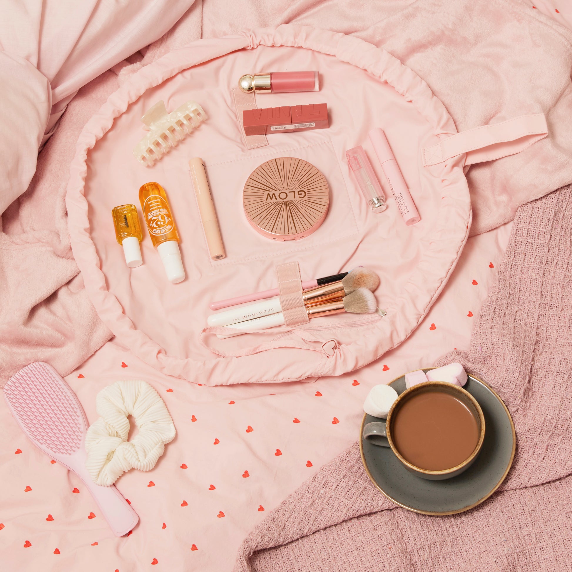 Upgrade your beauty organisation with the Drawstring & Brush Case bundle in our bestselling Sweet Pink Hearts print. Designed for effortless style and convenience, this duo keeps your essentials perfectly stored at home or on the go—all at a special discounted price. The perfect gift for a makeup lover or a well-deserved treat for yourself!