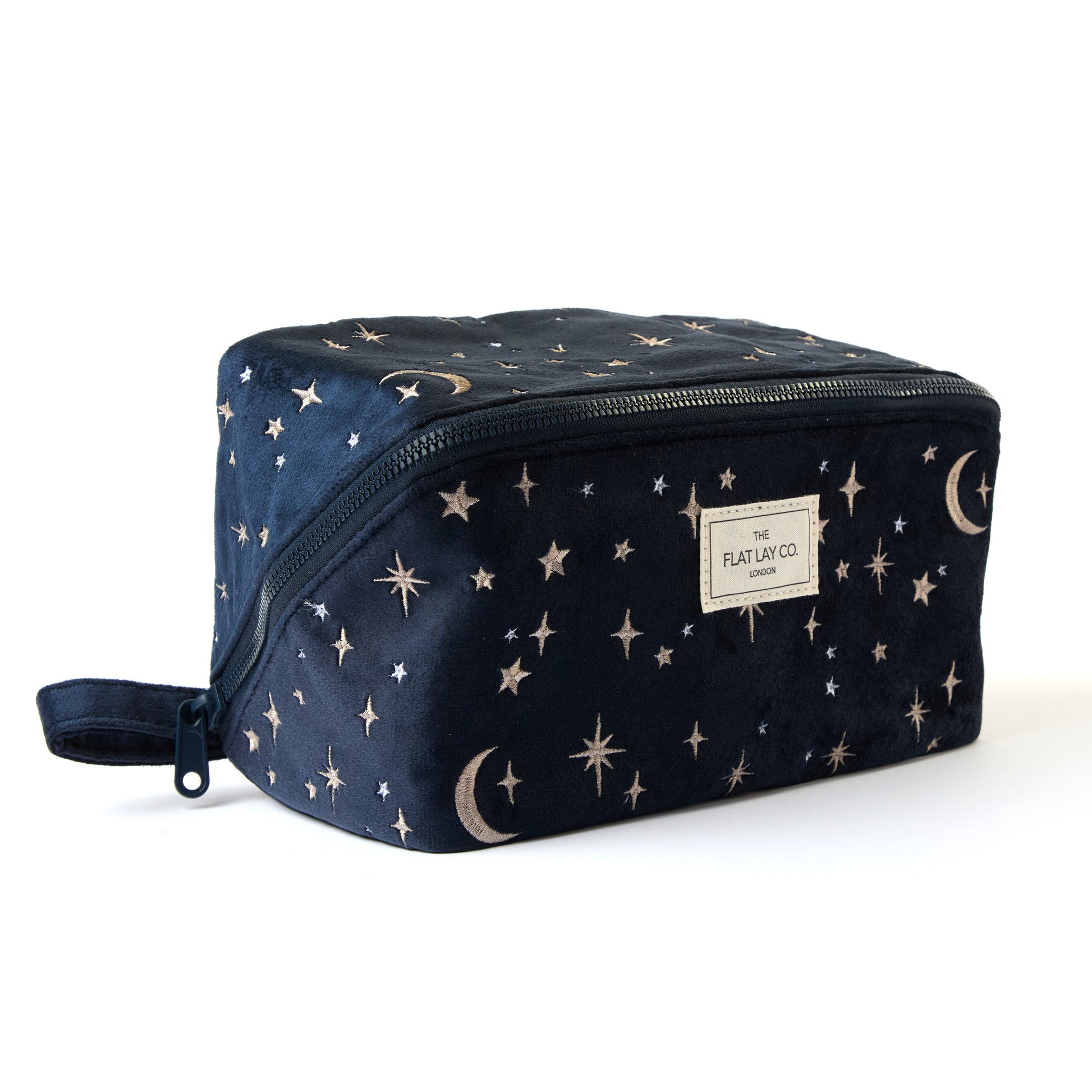 Flat Lay Makeup Box Bag - Celestial Blue Embroidered Velvet